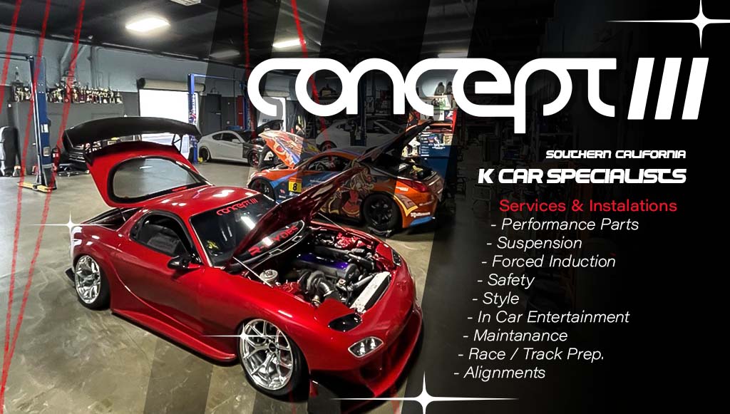 Concept III is an independent performance parts distribution center and retail shop located in Santa Fe Springs, CA. We provide various services such as, but not limited to, general maintenance, service and repairs, performance parts installation, engine tuning, suspension modifications, audio and alarm installations.